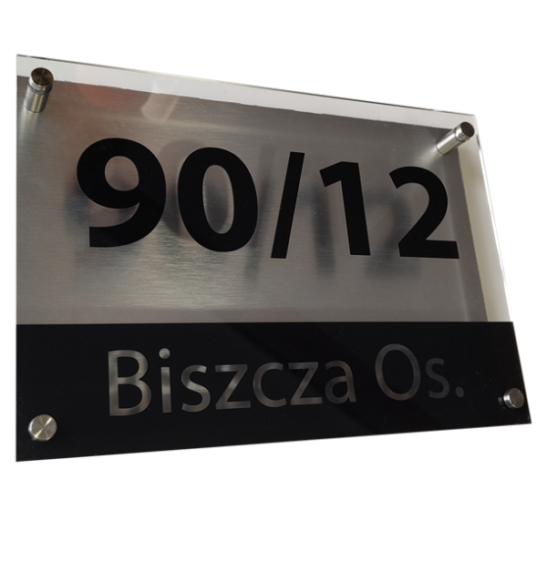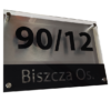 Tabliczki adresowe 3D wykonujemy z solidnej płyty kompozytowej „dibond” o grubości 3mm oraz z wytrzymałego przezroczystego poliwęglanu o grubości 3mm. Całość jest trzymana przez solidne dystanse ze stali nierdzewnej.