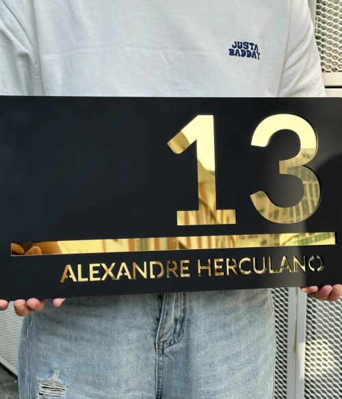 Stylowa, czytelna i estetycznie wykonana tabliczka sprawdzi się i na budynku i na ogrodzeniu. Jej uniwersalny wzór sprawia, że pasuje do większości miejsc i podkreśla elegancki wygląd posesji.