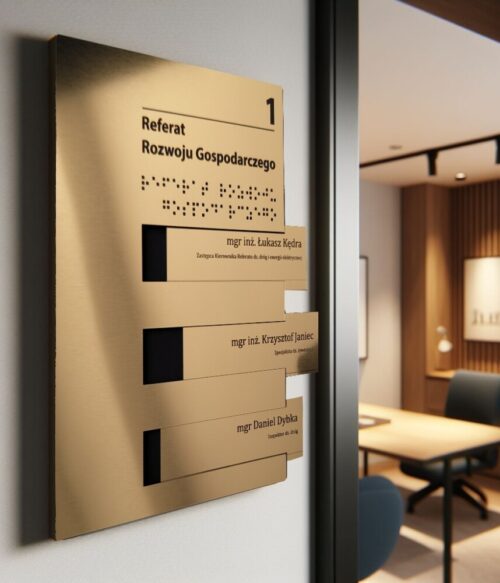Stylowa, czytelna i estetycznie wykonana tabliczka która doda stylu każdej instytucji.